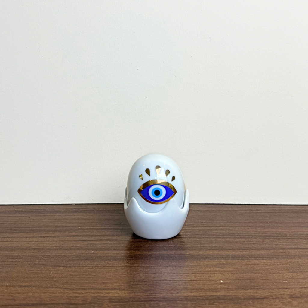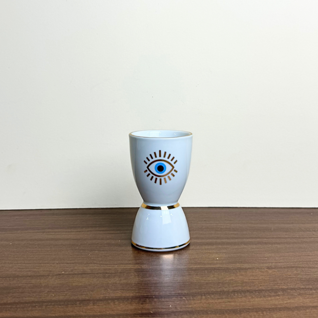 COPO PARA OVO EM PORCELANA DECORADA – COLEÇAO OLHO GREGO