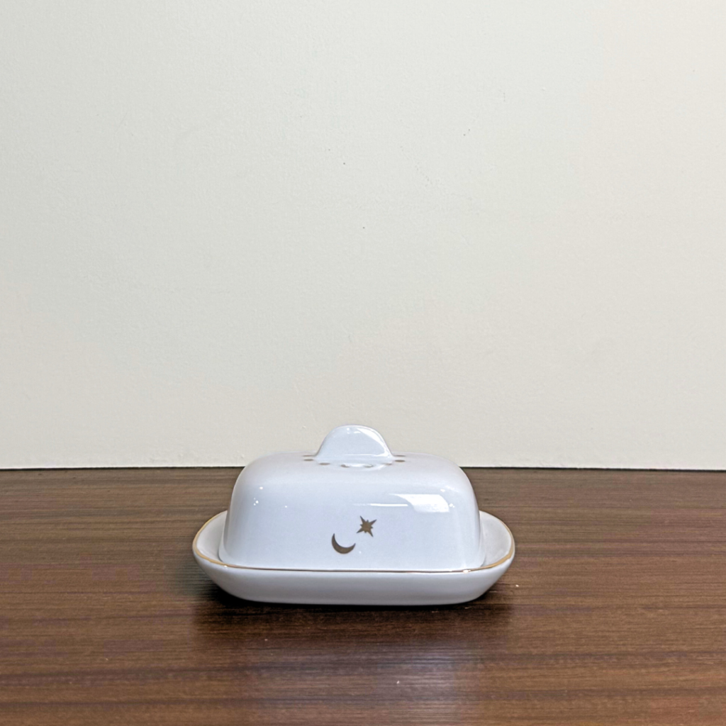 MINI MANTEIGUEIRA EM PORCELANA DECORADA – COLEÇAO OLHO GREGO