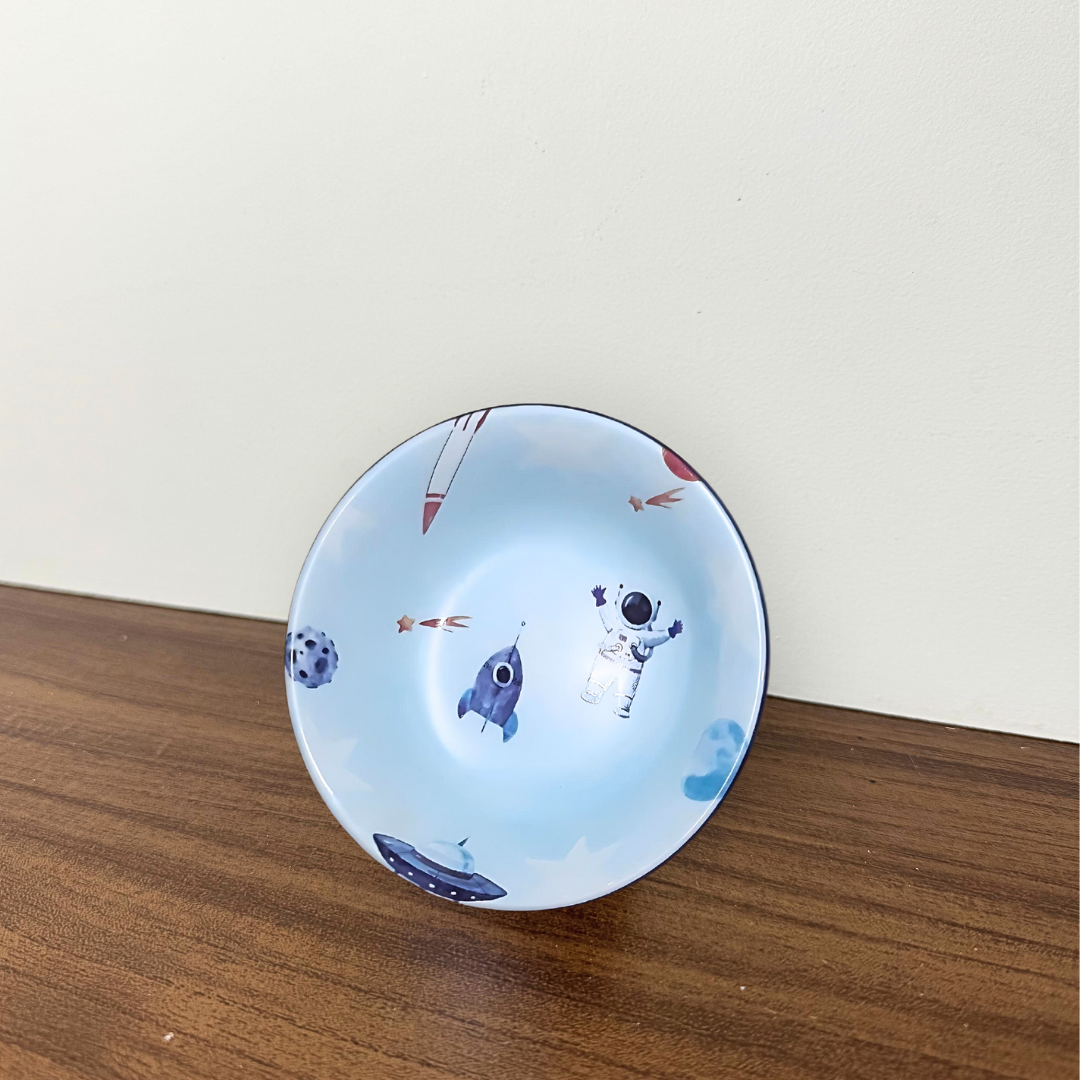 Este Bowl Infantil com desenho de Astronauta é uma peça original e exclusiva com decoração feita à mão pela artesã, e dona do ateliê, Tatiana Maria.