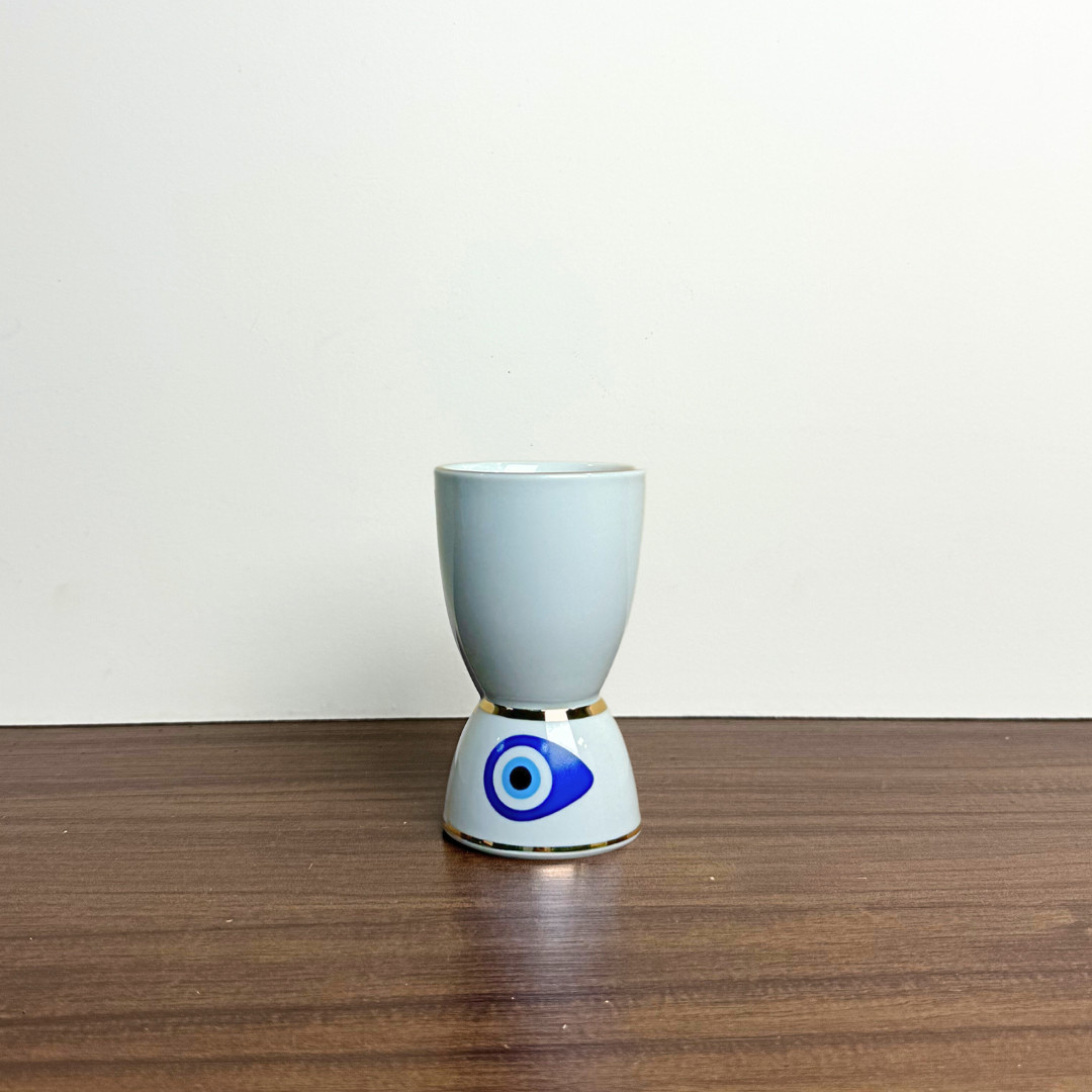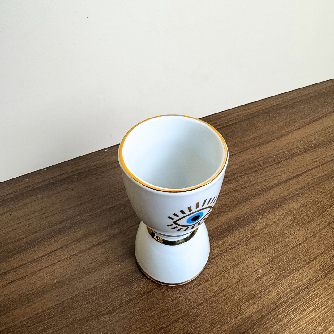 COPO PARA OVO EM PORCELANA DECORADA – COLEÇAO OLHO GREGO