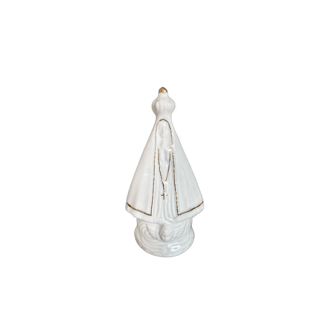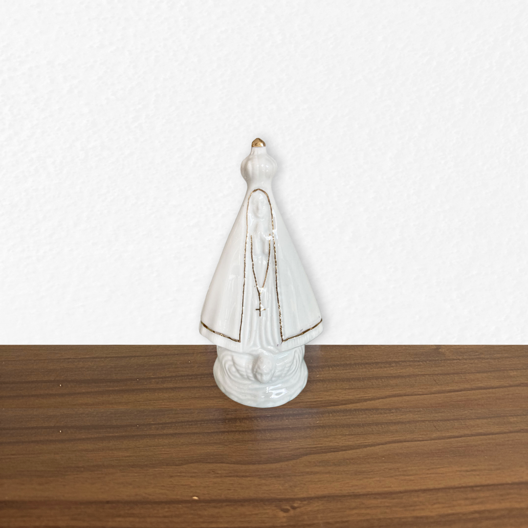 Esta Imagem de Nossa Senhora Aparecida é uma peça de porcelana branca de qualidade. Perfeita para decoração!