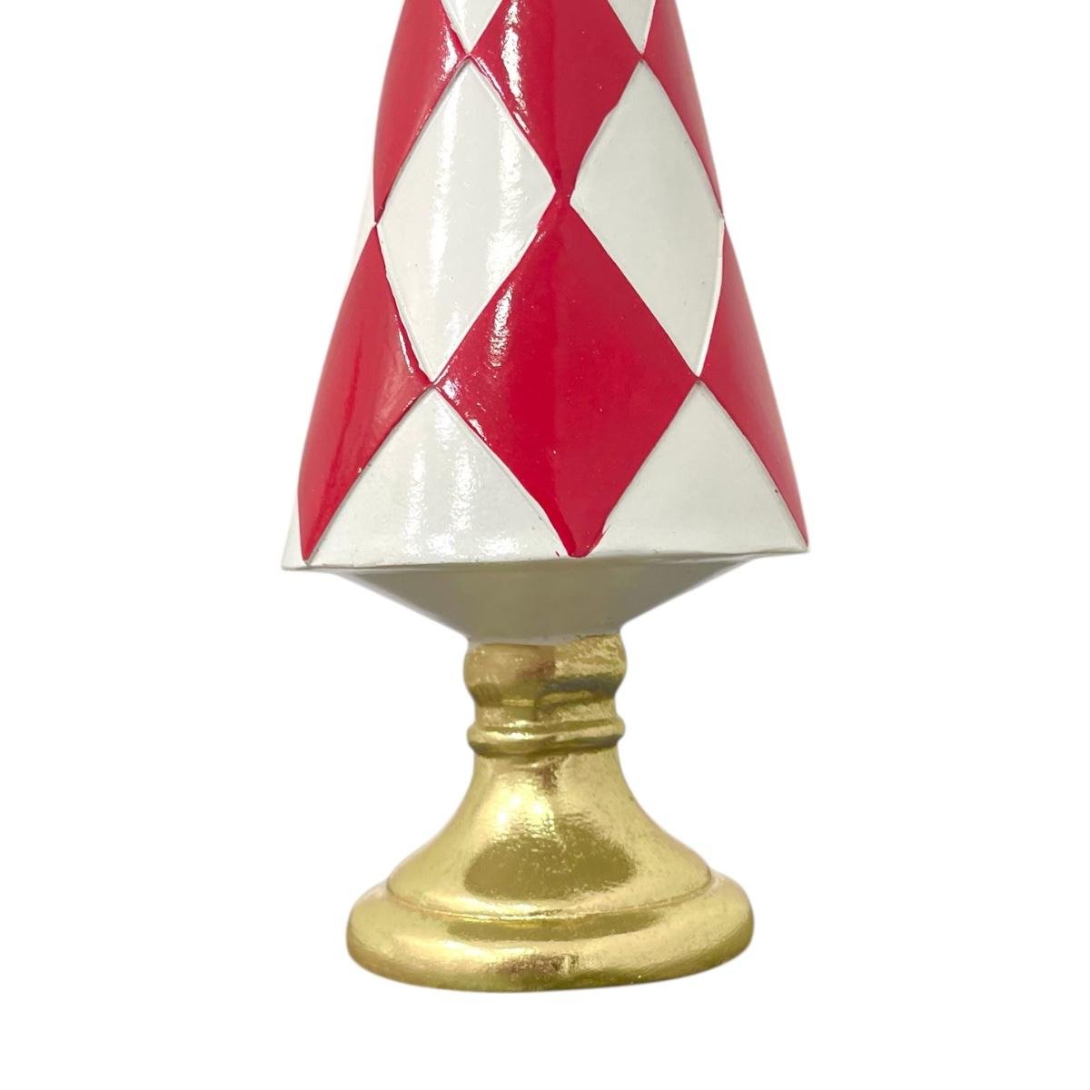 Com design encantador e acabamento refinado, esta peça decorativa em formato de árvore de Natal combina as cores clássicas da época – branco, vermelho e dourado – em perfeita harmonia. Ideal para compor mesas, aparadores ou cantinhos temáticos, ela traz elegância e o verdadeiro espírito natalino para o seu ambiente.