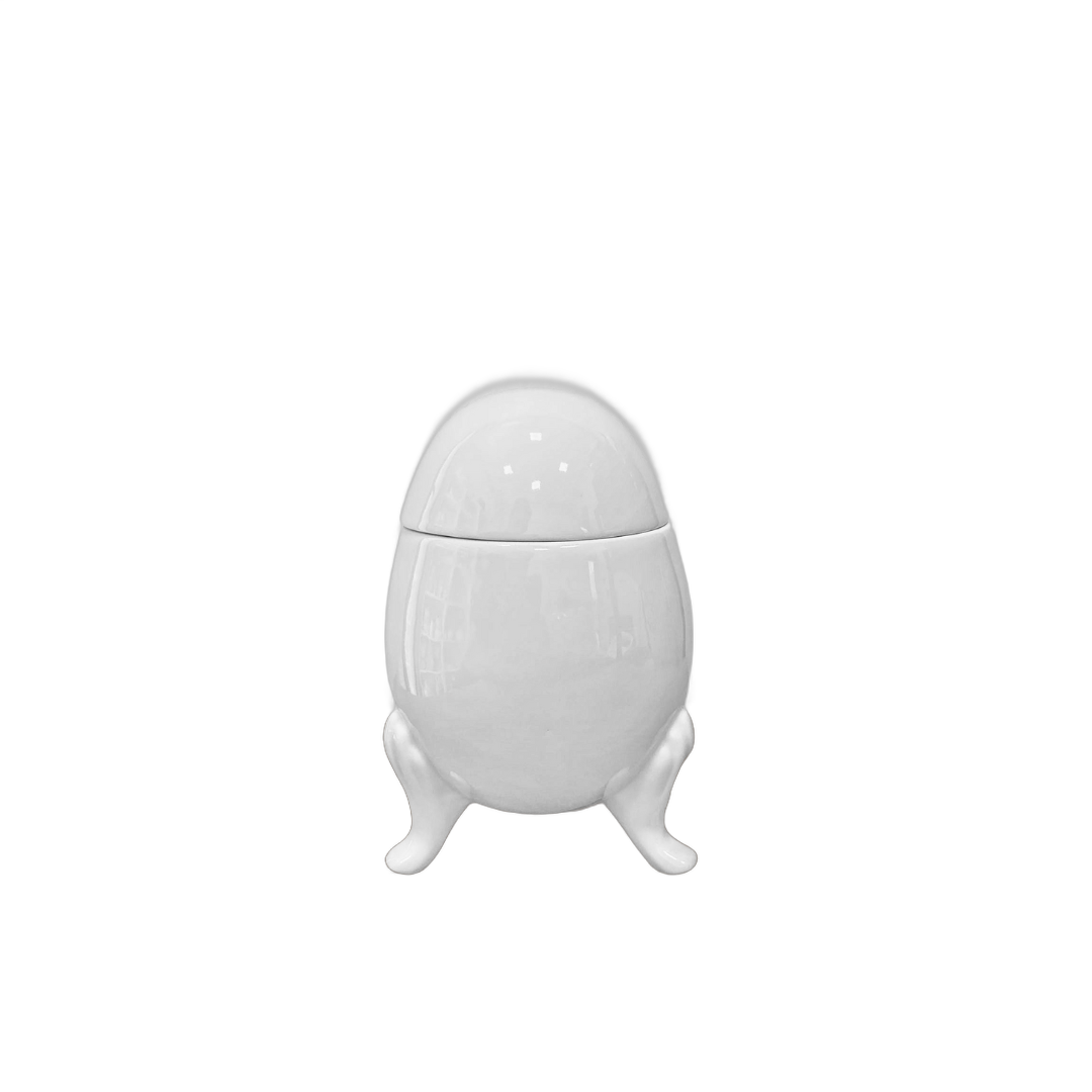 Porta-joias em porcelana branca em formato de ovo com delicado acabamento e base integrada com efeito de encaixe. Peça elegante, ideal para guardar pequenos itens com charme e compor a decoração com sofisticação.