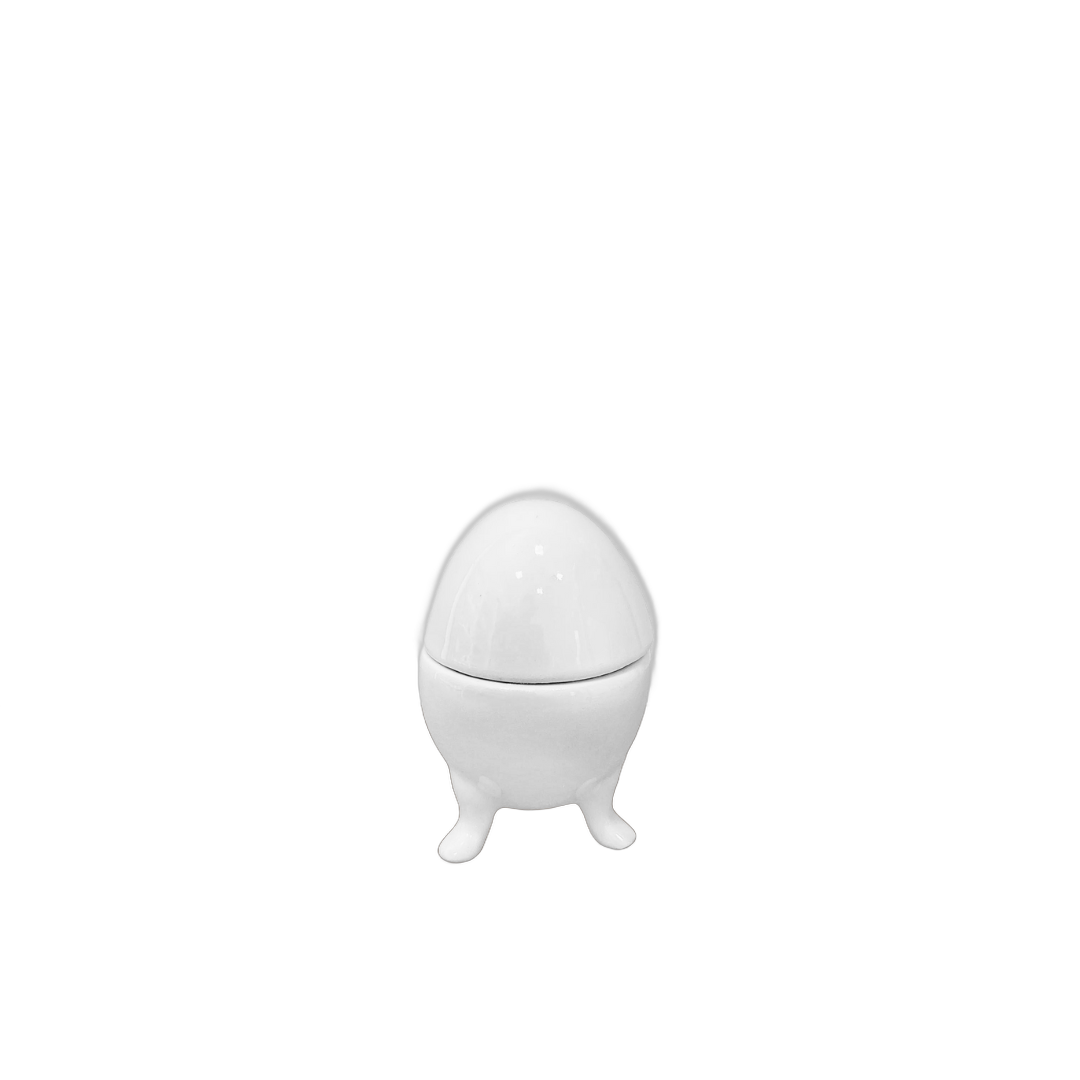 Porta-joias em porcelana branca em formato de ovo com delicado acabamento e apoio em pequenos pés. Peça elegante, ideal para guardar pequenos itens com charme e compor a decoração com sofisticação.