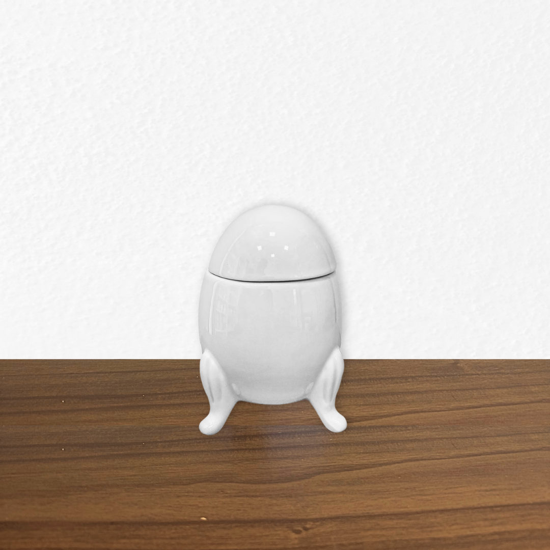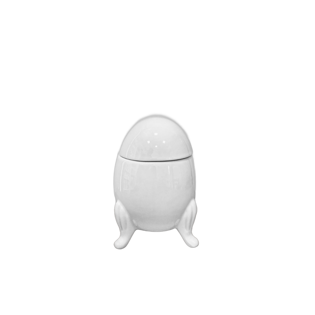 Porta-joias em porcelana branca em formato de ovo com delicado acabamento e base integrada com efeito de encaixe. Peça elegante, ideal para guardar pequenos itens com charme e compor a decoração com sofisticação.