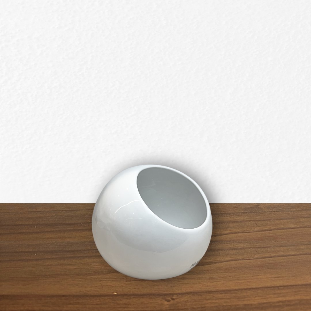 Saleiro em porcelana branca com formato arredondado e abertura superior ampla, prático para o uso no dia a dia e para compor a mesa com elegância e simplicidade.